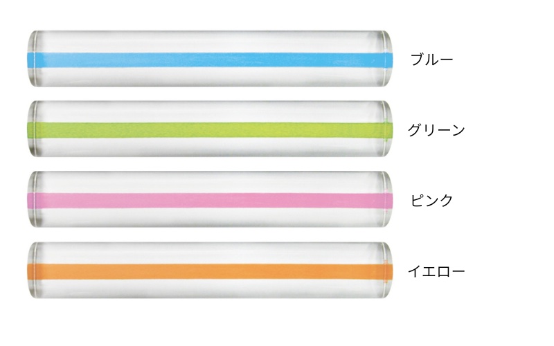 カラーバールーペは、文字が2倍に拡大されます。カラーのラインを行に重ねることで、行がくっきりと見えて、飛ばし読みがなくなります。