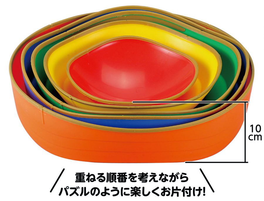 ●セット内容/本体A (オレンジ)×1、本体B(青)×1、 本体C (緑)×1、 本体D(青)×1、 本体E(青 )×1●サイズ(直径)/オレンジ:330 mm、青:305mm、緑: 280mm、黄:240mm、赤:180mm●重量/1,780g●耐荷重/100kg (株)アーテック
