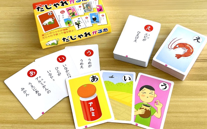 ふとんがふっとんだ。ねこがねころんだ。子どももおとなも、思わず笑ってしまうだじゃれをかるたにしました。笑いながら、いつのまにかことばに親しむことができます。