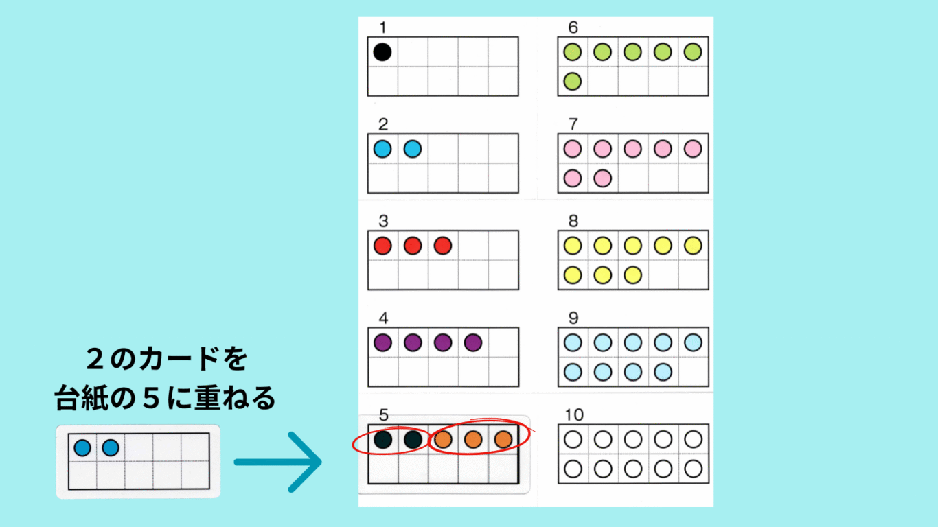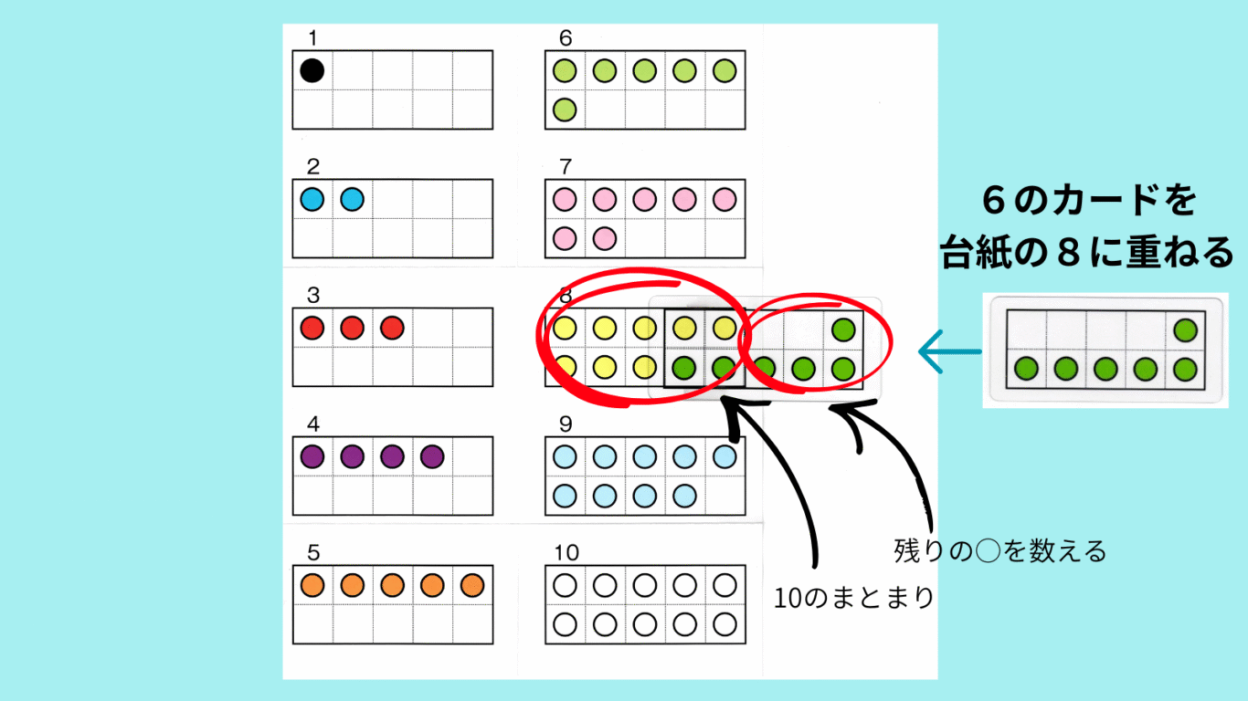 Tくんのように指を使っても答えが見つけられない子ども、指で答えを見つけられるようになってもその指計算から抜けられない子ども、そんな子どもたちはたくさんいます。それなら、速く、簡単に、正確に答えを見つけられる教具を作ってみよう。そんな思いから考え出したのがこのクリア数図カードです。