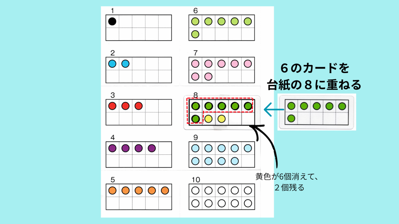 くり下がりのない引き算 8−6=2の場合