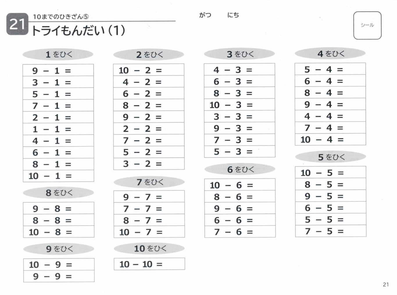 ドリルはサクランボ計算から繰り下がりの計算までスモールステップで学べます。