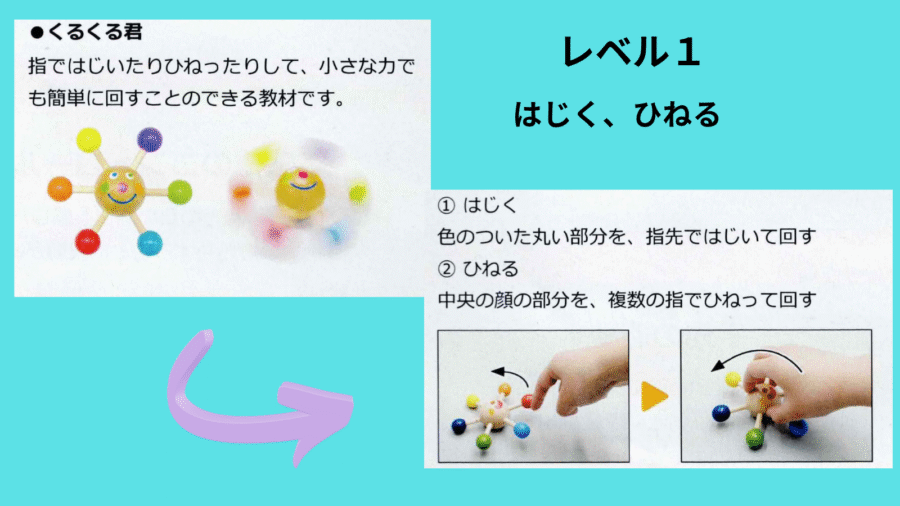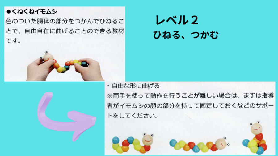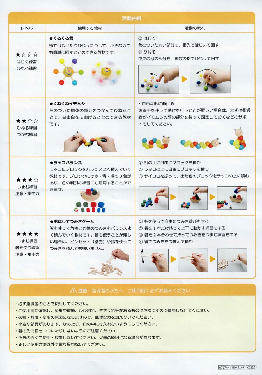 ひねる・つまむ・つかむ・積むなど手指をコントロールしてうまく動かす練習ができます。