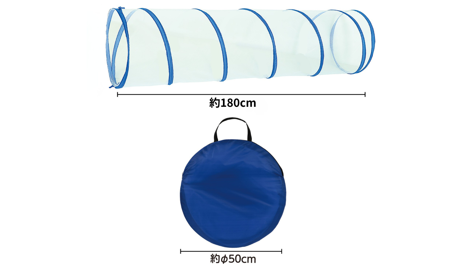 セット内容/本体、収納袋 カラフルプレイトンネル:直径460×1750mm 素材/ポリエステル メッシュクリアトンネル:直径460×1800mm 素材/鉄、テトロン 製造/(株)アーテック