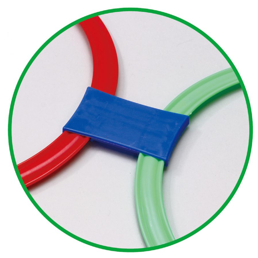 ●セット内容/赤・青・黄・緑・オレンジ各色 10リング:2個ずつ、20リング:4個ずつ、50リング:10個ずつ、ジョイントパーツ 10リング:10個、20リング:20個、50リング:50個 ●リングのサイズ/直径280mm、内径240mm ●重さ/10リング:385g、20リング:746g、50リング:1925g (株)アーテック